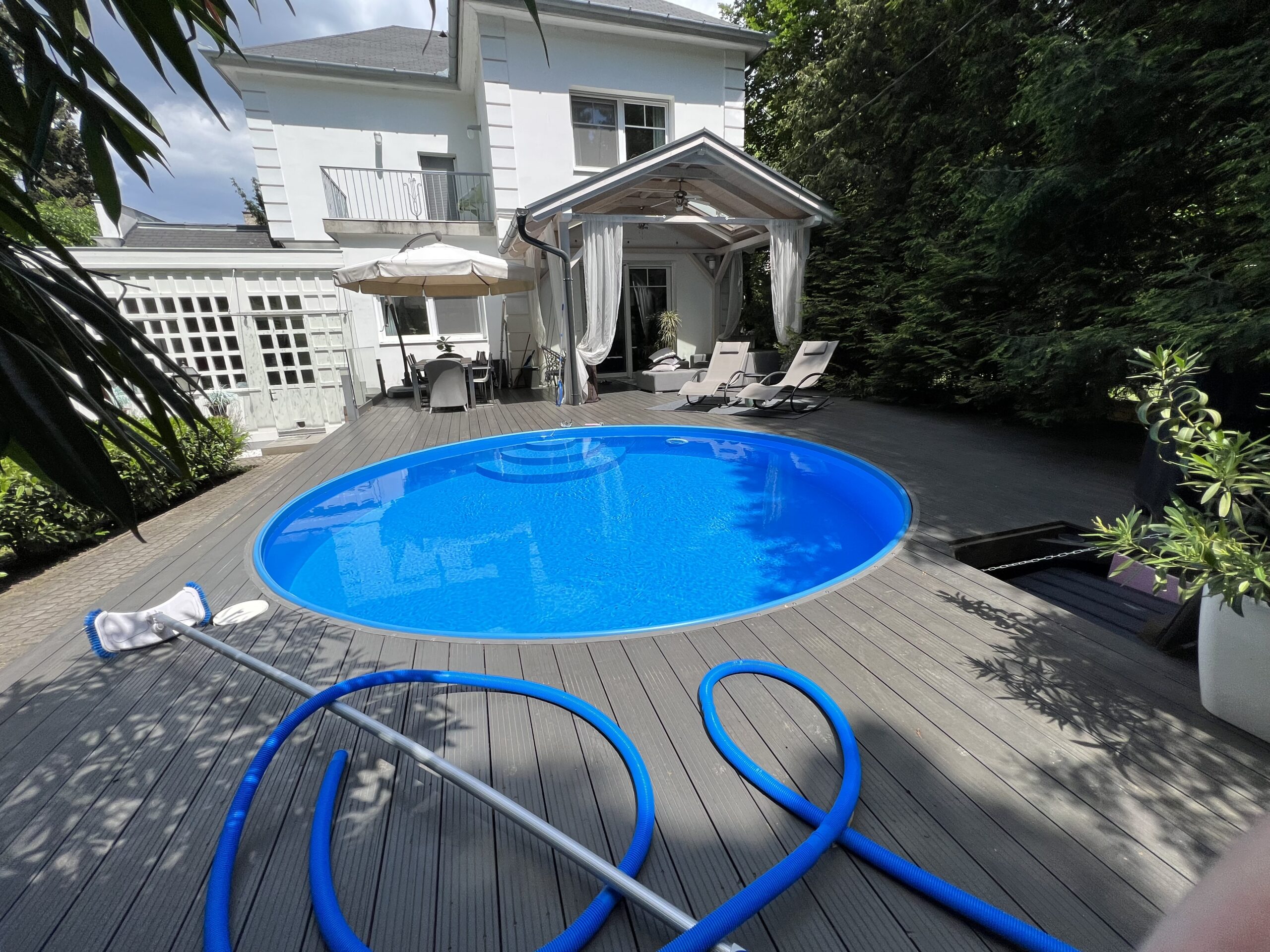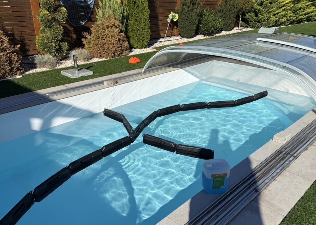 Takaró fóliáról a víz leszivattyúzása , fagytestek eltávolítása, minden funkció ellenőrzése, hogy a tulajdonosnak csak élveznie kelljen a medence használatàt