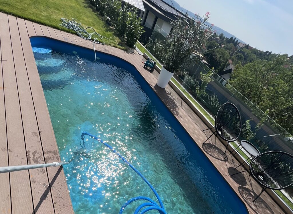 Saját anyagával, modern gépekkel, kézi és extrúderes hegesztéssel, nagy tapasztalattal, akár 10+ éves medencék esetén is megbízható kivitelezéssel.